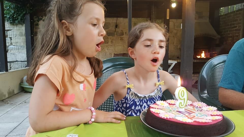 Nous avons fêté au jardin l'anniversaire de notre petite Léonore qui a eu 9 ans le 14 juin. Pour l'occasion j'avais fait un gâteau moelleux au chocolat que j'avais décoré de pâte à sucre et pâte azyme. J'adore pâtisser. Il a été très apprécié. C'était le soir de la qualification de la France contre l'Argentine en 8ème de finale. On était tous doublement heureux même mes petites puces qui sont supportrices du Paris Saint-Germain et de ses stars du ballon rond.
